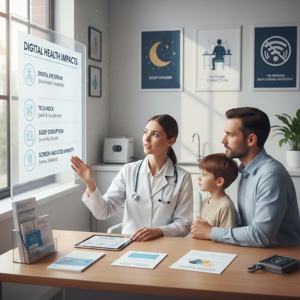 - Patient Education Materials: Professionally designed brochures and digital guides on topics like digital eye strain, 'tech neck' posture correction, improving sleep hygiene, and managing digital-induced anxiety, which can be distributed in clinics.